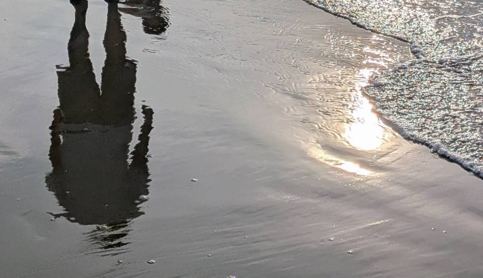 日本海も初めて行きました^^(夕日と夫と息子の影w)